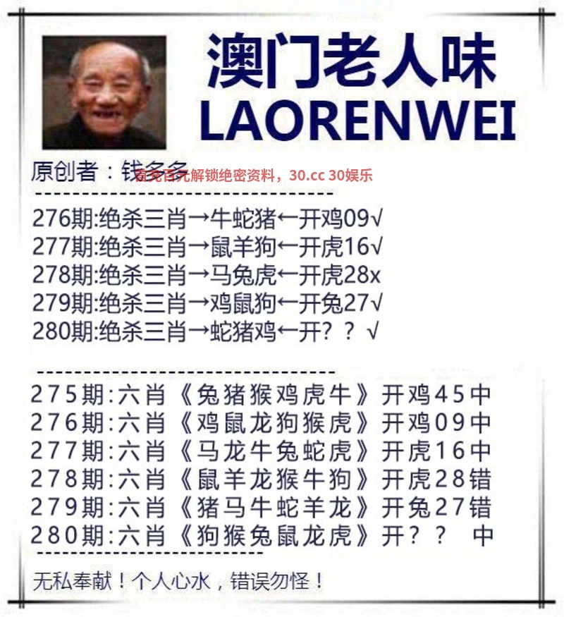 281期:绝杀二肖『猴鸡』开:羊47准
